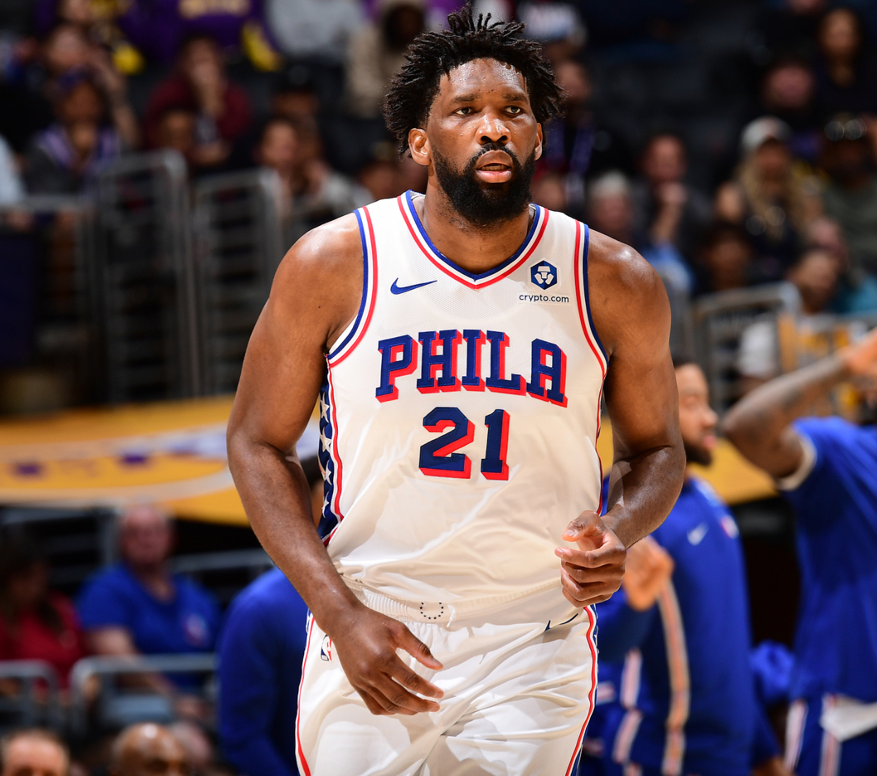 恩比德在第三节再度化身表演艺术家,朝艾顿身上跳自己倒地还去要犯规,拉拉维亚不伸手他投篮抬肘击中拉拉维亚胸口裁判给2+1,恩比德表演后两个中投命中完成30+,三节28分钟,恩比德15中11+三分1中1+罚球7中7拿到30分7篮板6助攻1抢断2盖帽。